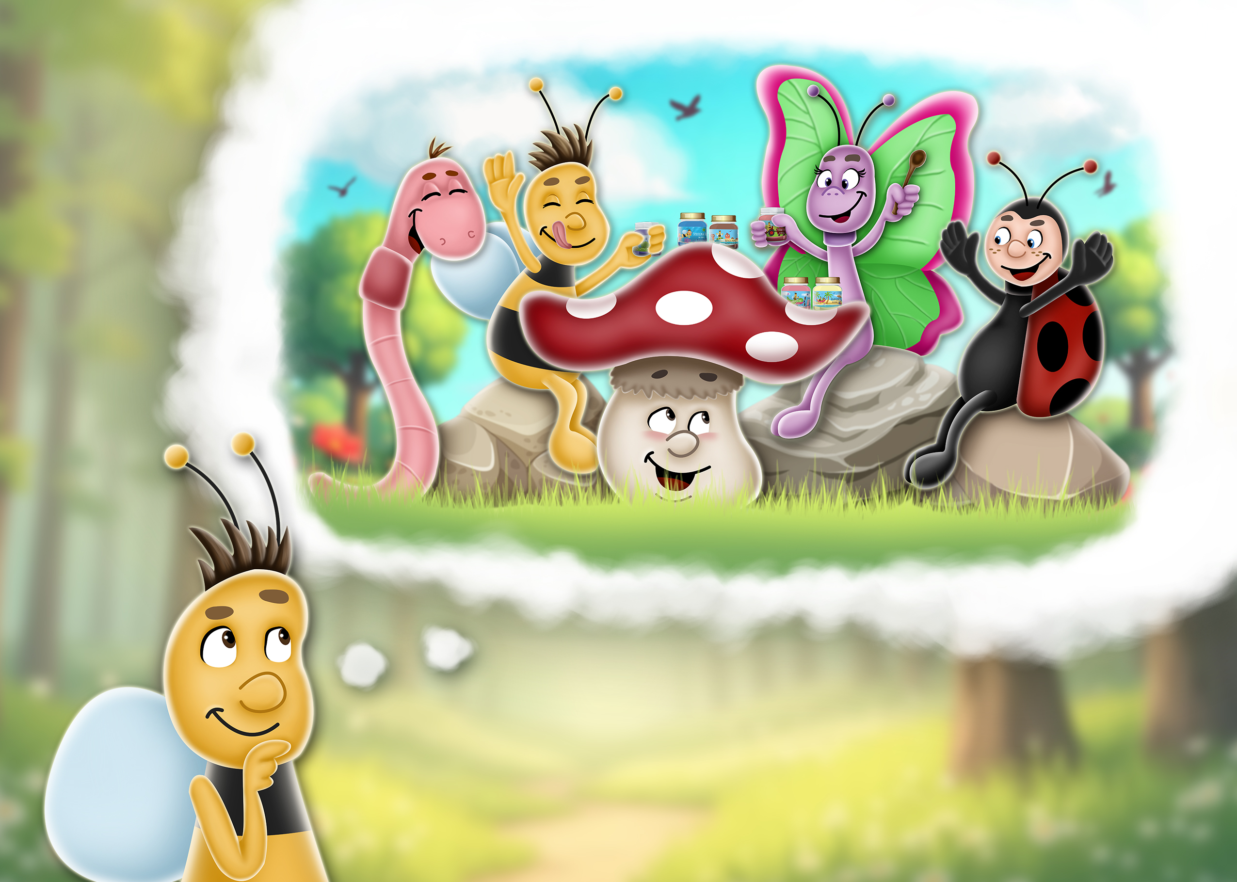 Folgende Illustrationen sind im Auftrag der Imkerei Grega entstanden. Die Illustrationen wurden als Etiketten für Honiggläser verschiedener Sorten verwendet. Die Illustrationen sollen besonders junge Honig-Fans ansprechen. Dabei habe ich auch saisonale Motive (Weihnachten und Ostern) gestaltet.