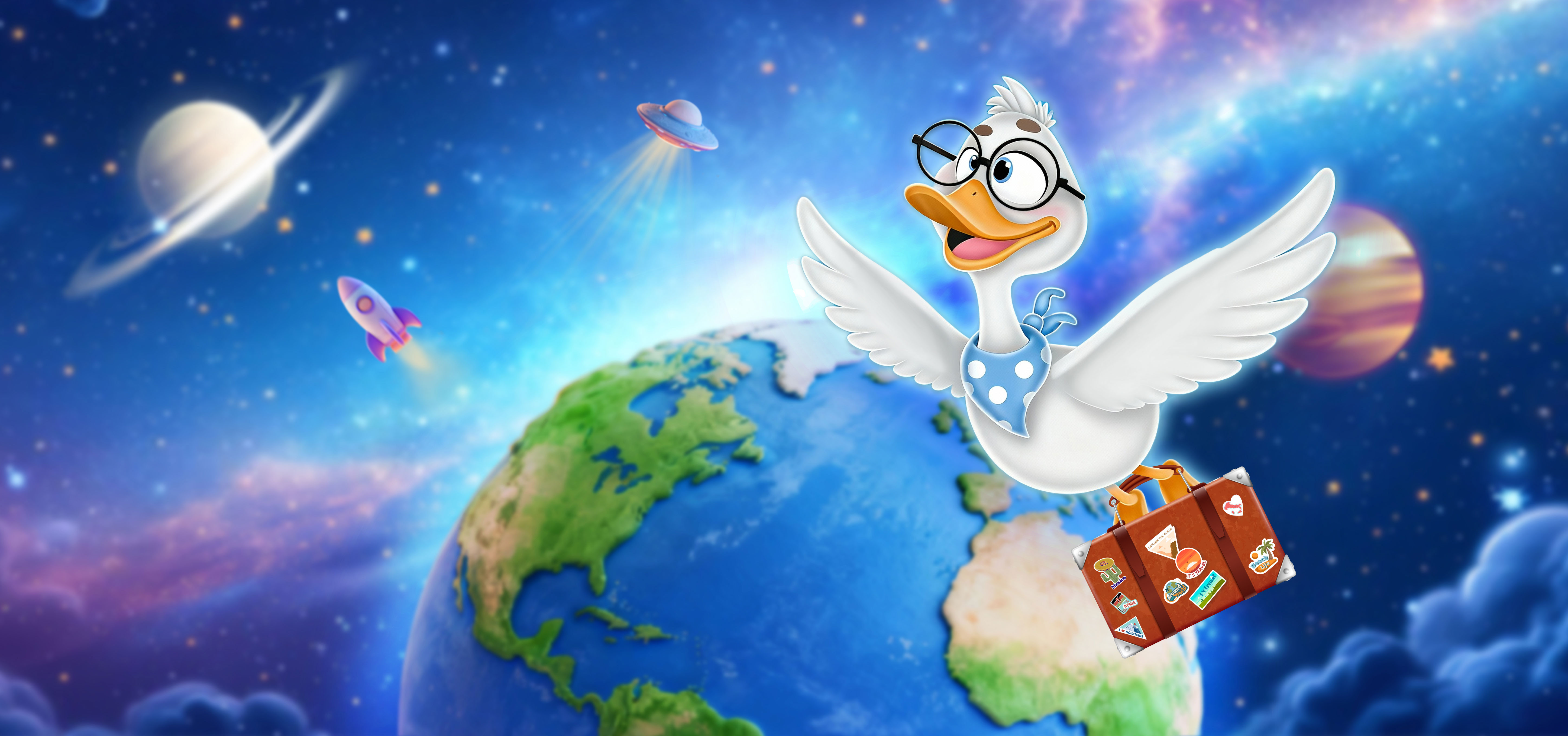 Gans Fridolin erkundet in diesem musikalischen Bilderbuch die ganze Welt. Auf seinen Reisen trifft er viele Freude und steckt alle mit seiner Neugier und seiner Lebensfreude an.