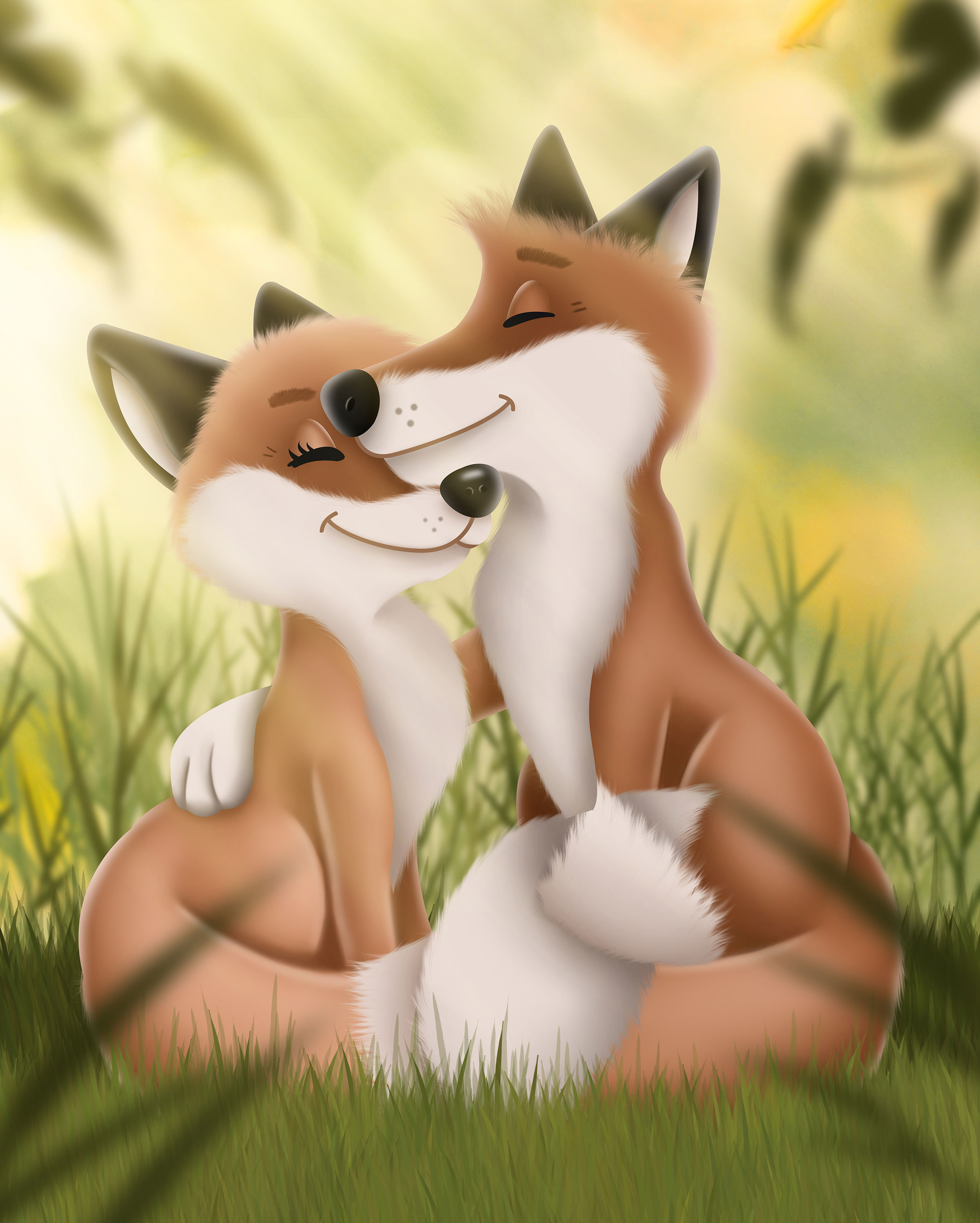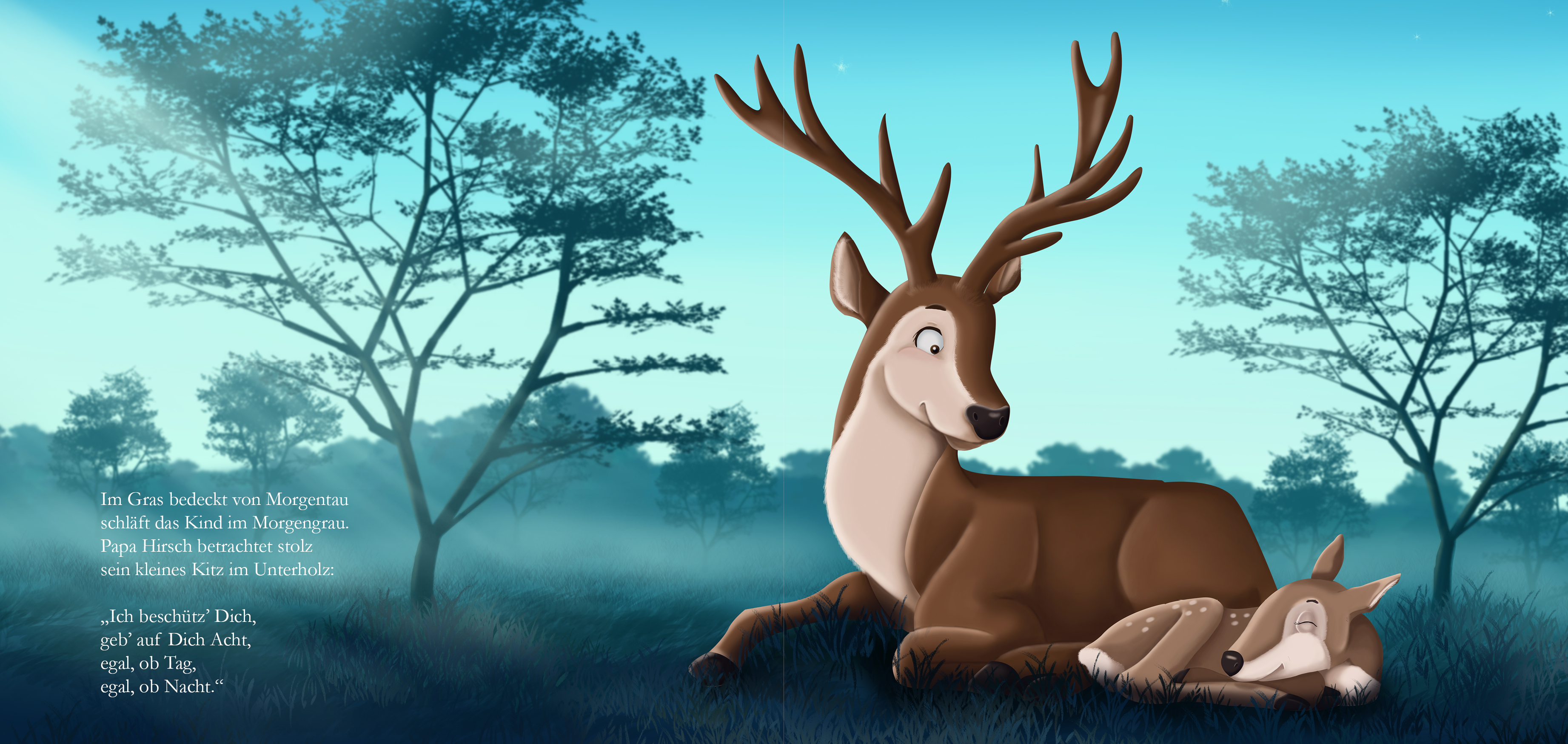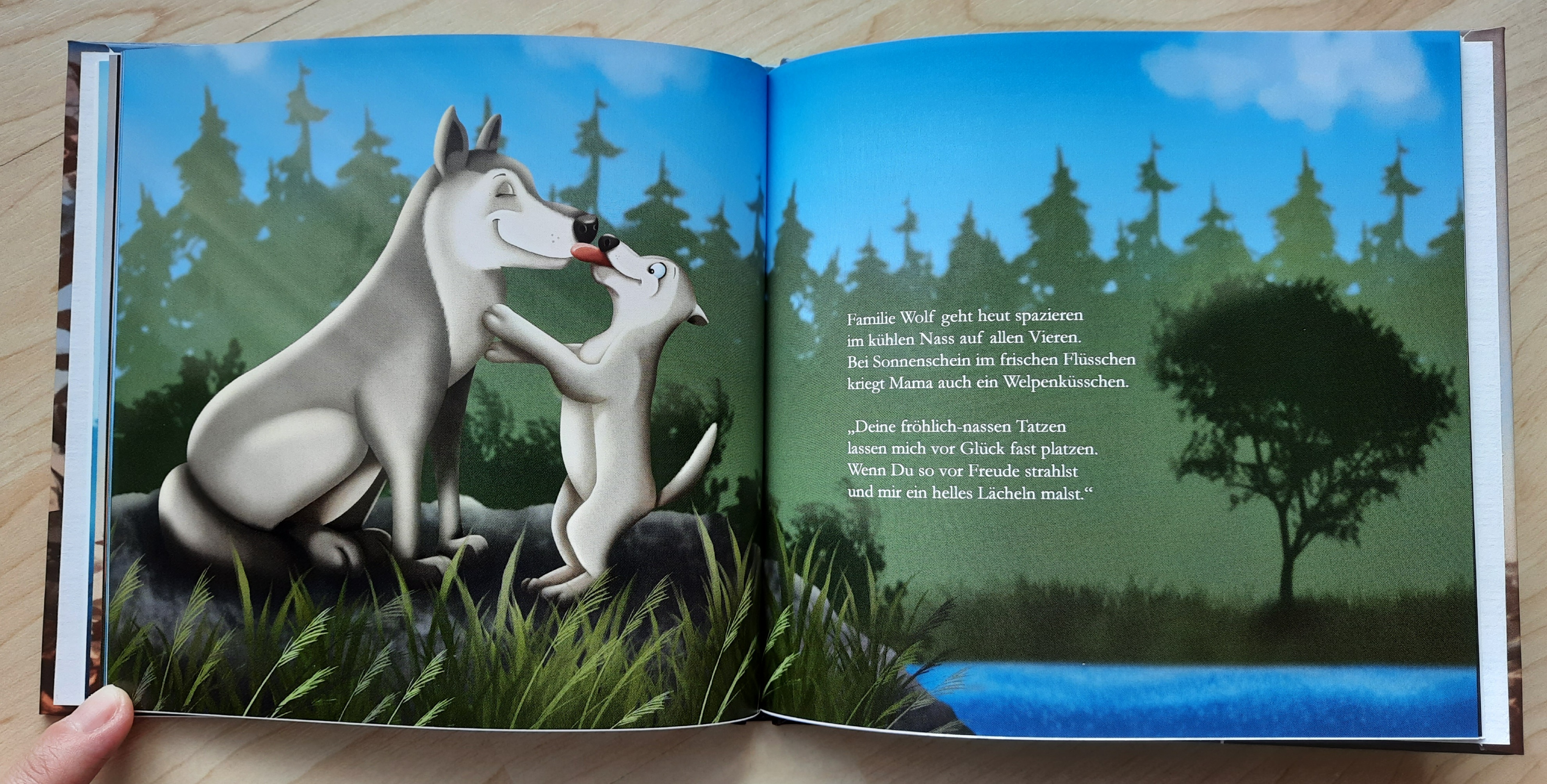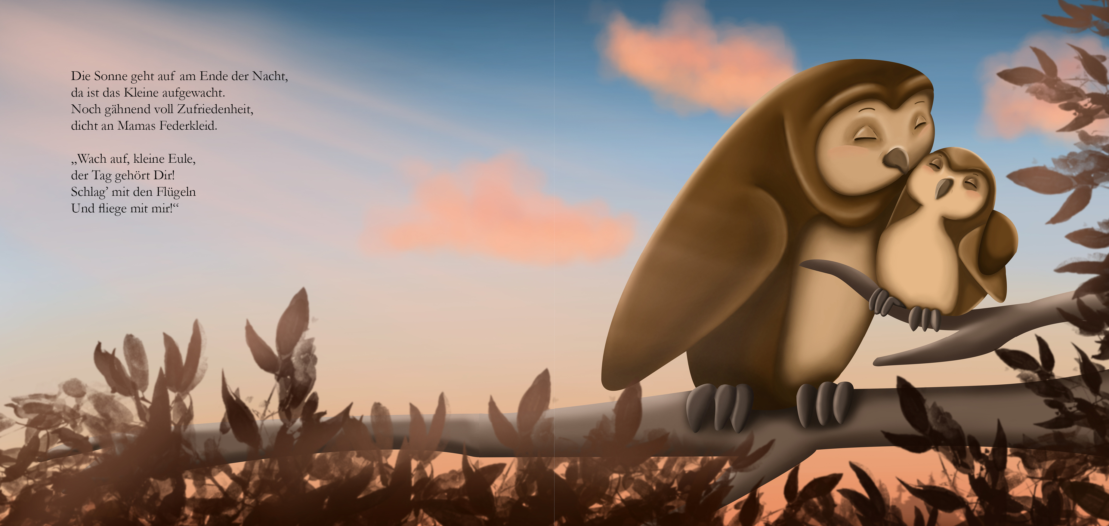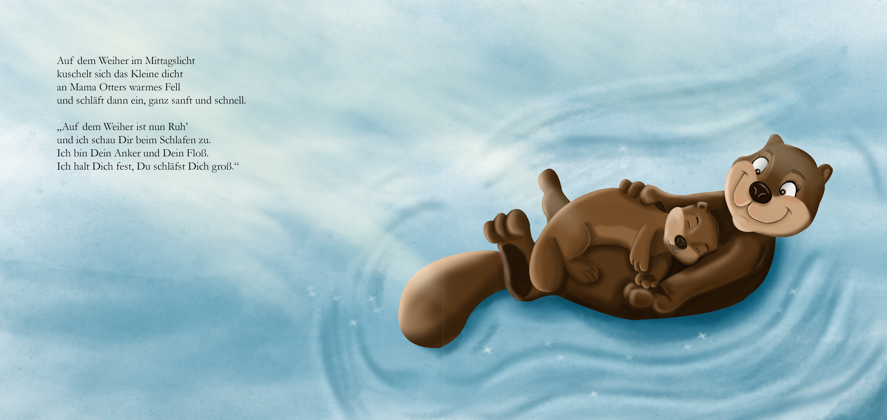 Bei den Illustrationen zu diesem Buch war mir besonders wichtig, eine friedlich-liebevolle Atmosphäre zwischen den Tierkindern und ihren Eltern zum Ausdruck zu bringen.