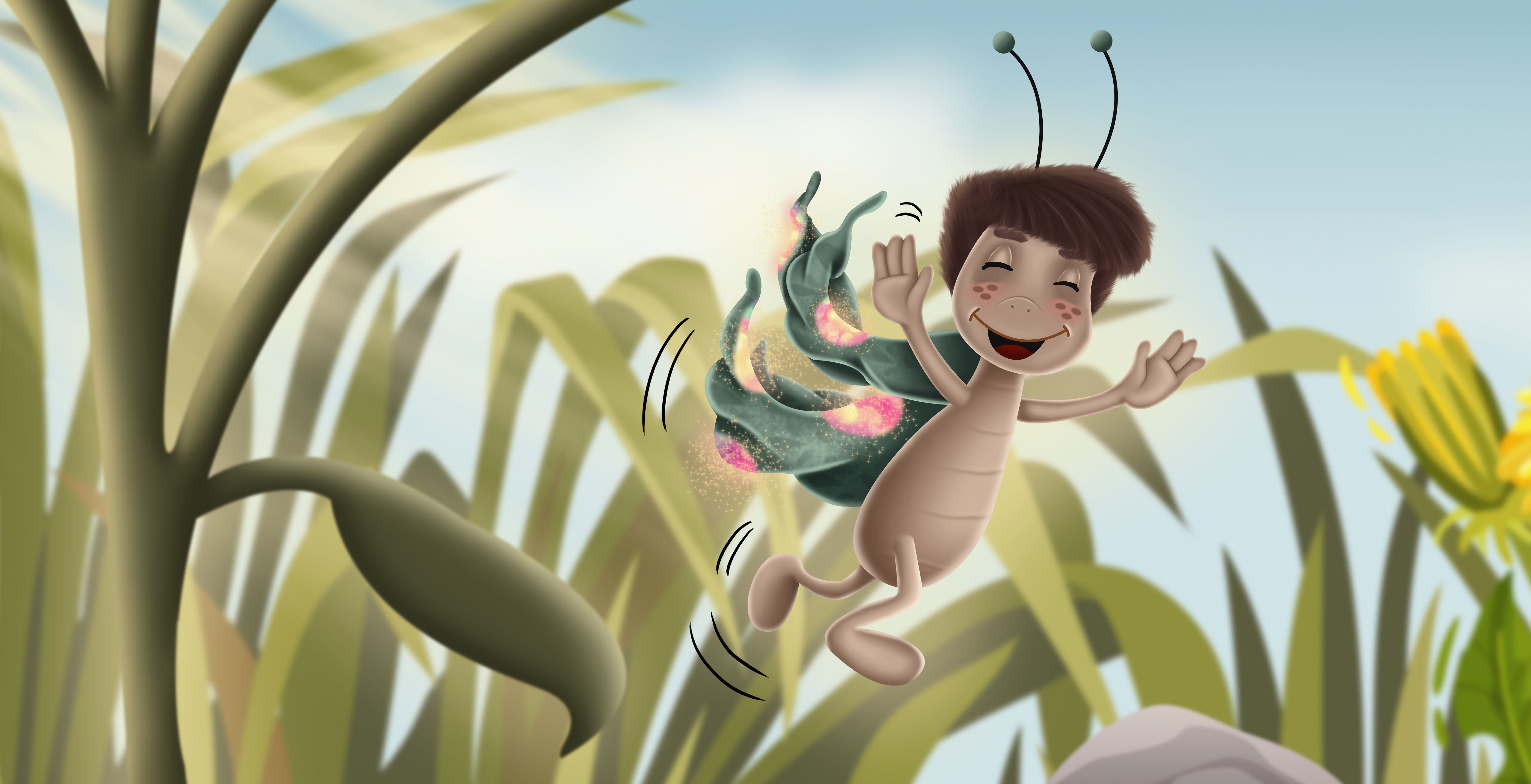 Die kleine Schnecke mit meinem digitalen Pinsel zum Fliegen zu bringen, hat mir besonders viel Freude gemacht. Das Buch zeichnet sich durch die besondere Freundschaft zwischen Schnecke und Schmetterling aus. Eben dieser Freundschaft wollte ich durch ein besonders sympathisches Characterdesign Rechnung tragen.